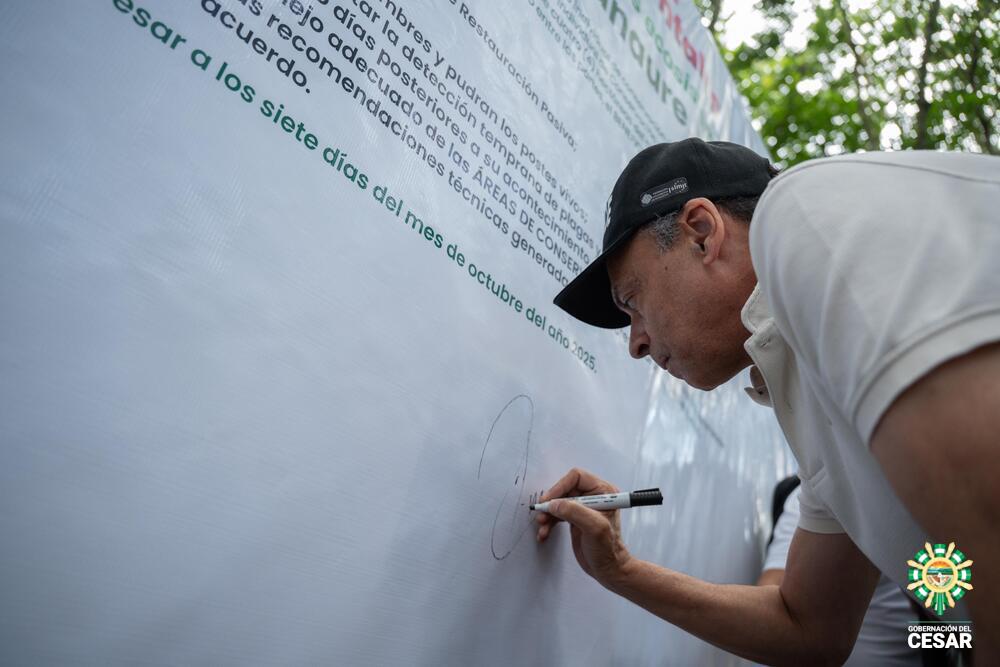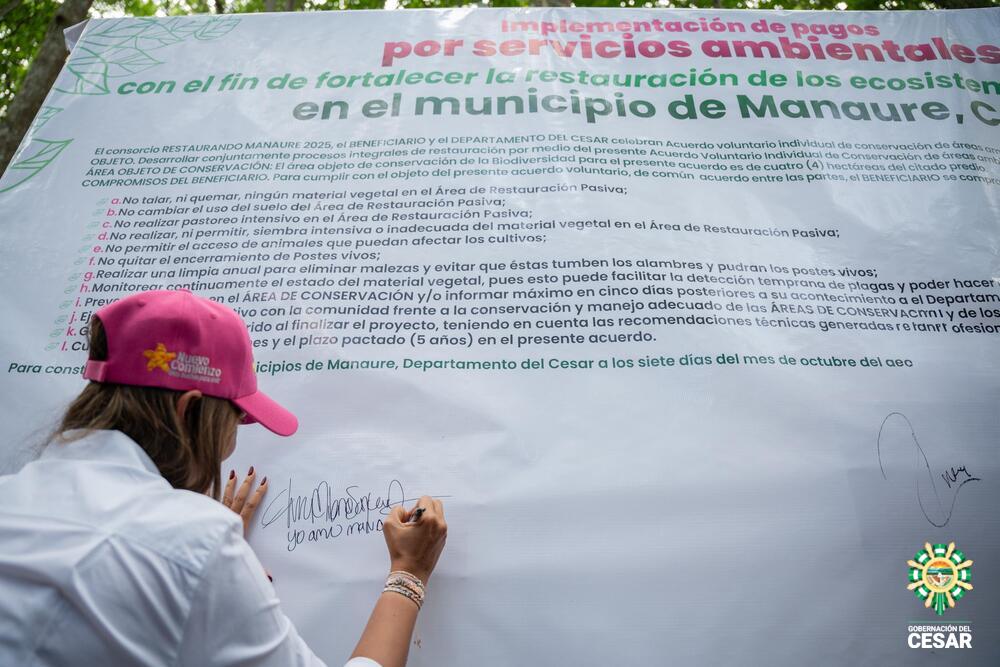 Con una inversión que reafirma el compromiso con la sostenibilidad ambiental y el desarrollo rural, el Gobierno del Cesar, bajo el liderazgo de la gobernadora Elvia Milena Sanjuan Dávila, ha oficializado el programa de Pagos por Servicios Ambientales (PSA) en Manaure Balcón Turístico del Cesar. Con una inversión superior a los $1.600 millones. Esta iniciativa beneficiará directamente a 26 familias locales, quienes se convertirán en guardianes estratégicos para la conservación de 52 hectáreas de bosque y fuentes hídricas en la cuenca del río Manaure.