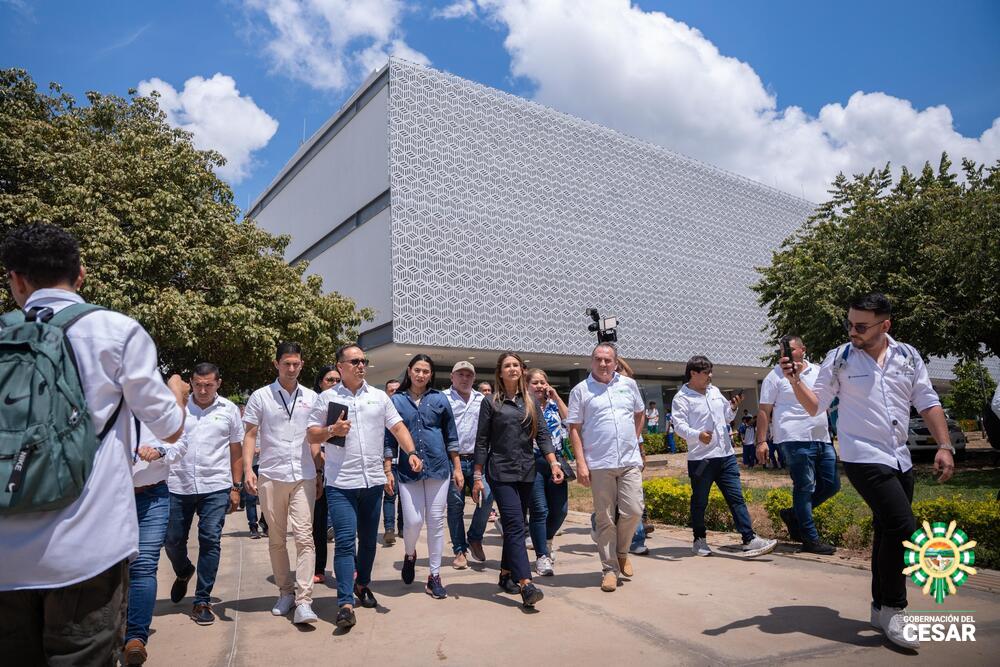 Con la calidez y la energía que la caracterizan, la gobernadora invitó a los jóvenes a creer en su talento y a aprovechar cada oportunidad que ofrece la educación como motor de transformación: "mis chicos morrocoyeros, como suelo llamarlos, morrocoyeras, como suelo llamarlas, este es el momento. Decidan emprender un viaje en la materialización de un sueño que se puede estar convirtiendo en la llave que abra todas las puertas que ustedes se permitan tocar, siendo unos jóvenes profesionales. Perpetúen este momento en sus memorias como esa gran oportunidad de avanzar en la búsqueda de la realización de sus sueños. No estamos escatimando en la inversión pública para traer a los centros de formación ese pensamiento creativo, ese pensamiento que abra la mentalidad de los jóvenes del departamento del Cesar".